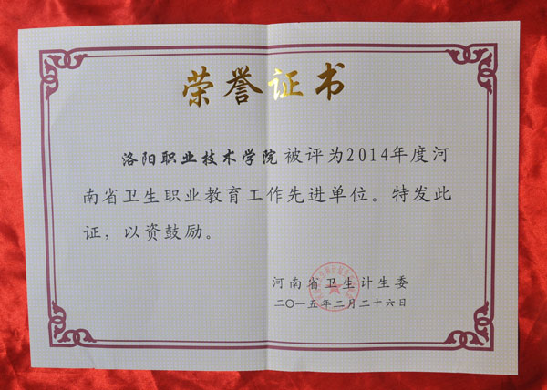 近日,2015年河南省卫生科教工作召开,我院被河南省卫生计生委评选为河南省卫生职业教育工作先进单位。