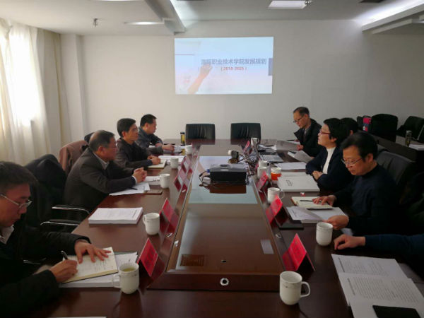 院长程相朝教授汇报《纲要》起草情况,《纲要》从基础与形势、办学定位与目标思路、主要任务、措施与保障等四个方面详细、科学的阐述了2018年-2025年洛阳职业技术学院建设发展规划。