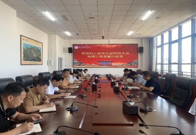 9月13日,党政办公室党支部在图书馆801会议室召开支部党员大会暨第三季度警示教育,支部全体党员参加。